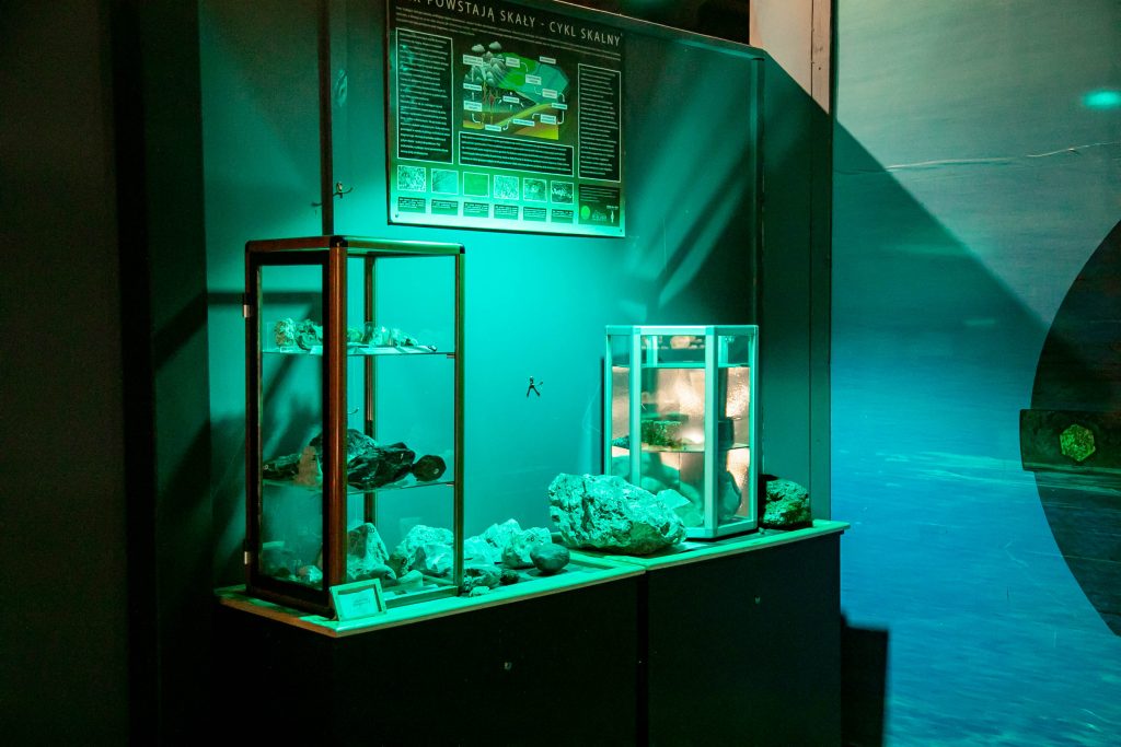- zaaranżowanie byłych witryn sklepowych na wystawę z kambryjskimi skamieniałościami,